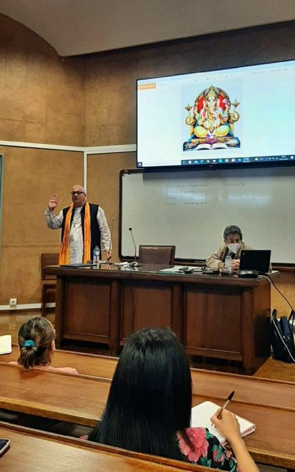 Del 18 al 20 de mayo el sacerdote hindú, escritor y conferenciante Juan Carlos Ramchandani (Krishna Kripa Dasa) ha estado impartiendo unas conferencias en la Universidad de Coímbra en Portugal. Ha sido invitado por Academia Para o Encontró de Culturas e Religioes (APECER) y su director el profesor Joao Gouveia Monteiro, catedrático de historia medieval y profesor en el curso de historia de las religiones.